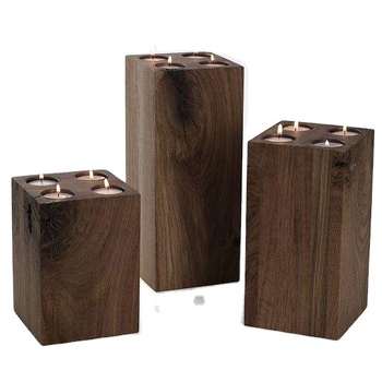 Square Shape High Quality Wooden Candle Holders Pillar Candle Holders Set of 3 Wholesale Supply Home and Wedding Decorative